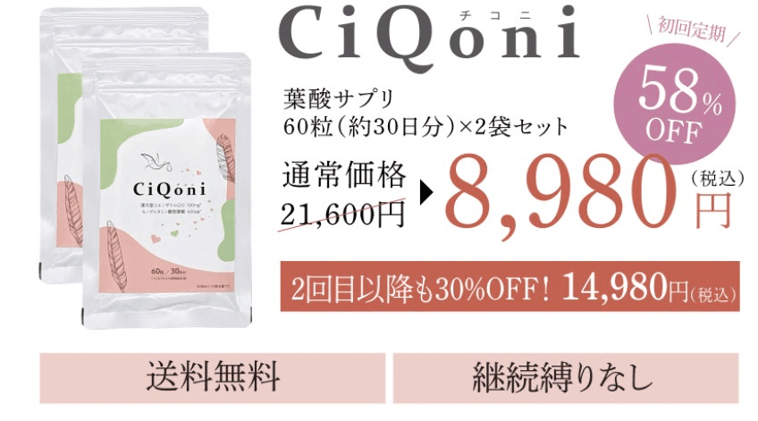 妊活葉酸サプリ チコニ(CiQoni)の特徴や口コミを調査!Amazon、楽天市場と公式のどこがお得?
