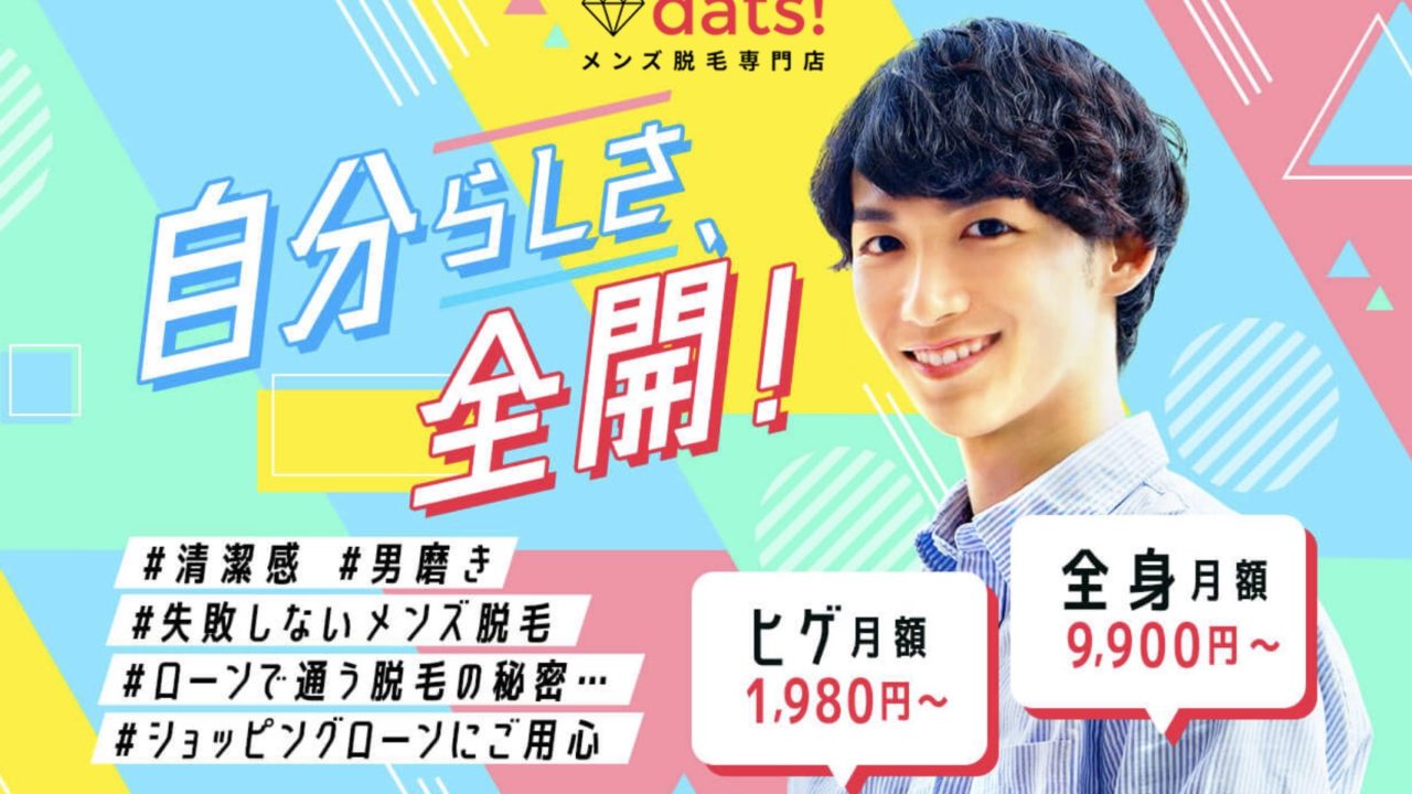 男性オーナー&スタッフ、都度払いのメンズ脱毛サロンとして話題になっているメンズ脱毛dats!(ダッツ)について口コミ評価・料金プランなどを調査しました。