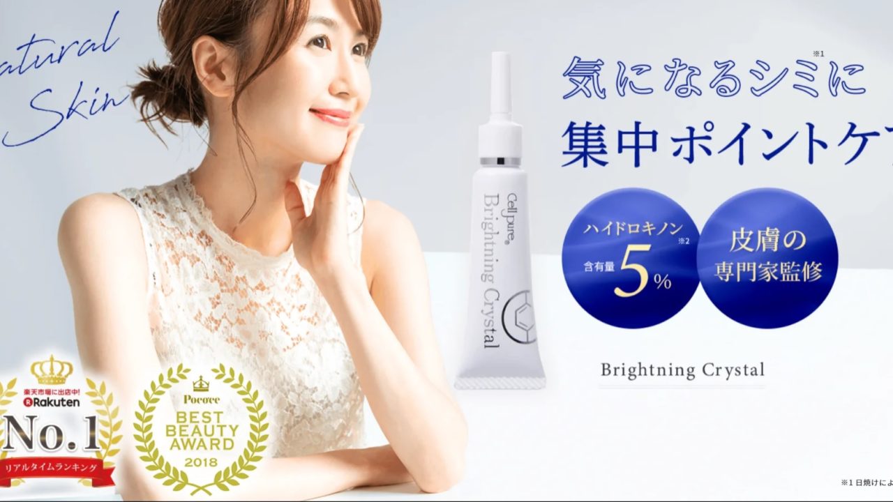そこで、クリニックでのシミ治療から生まれた、高濃度のハイドロキノン5%含有のクリーム セルピュアの「 ブライトニングクリスタル」の口コミ評価、最安値などを調査しました